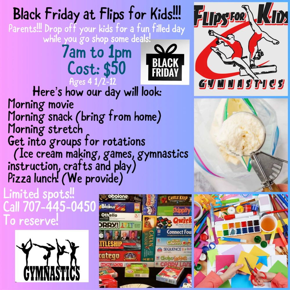 Offering a fun Black Friday event for kids this year! Call to sign up!